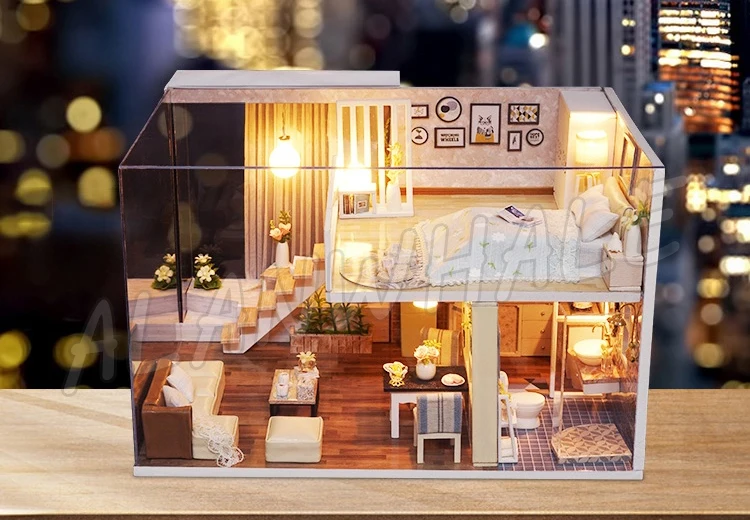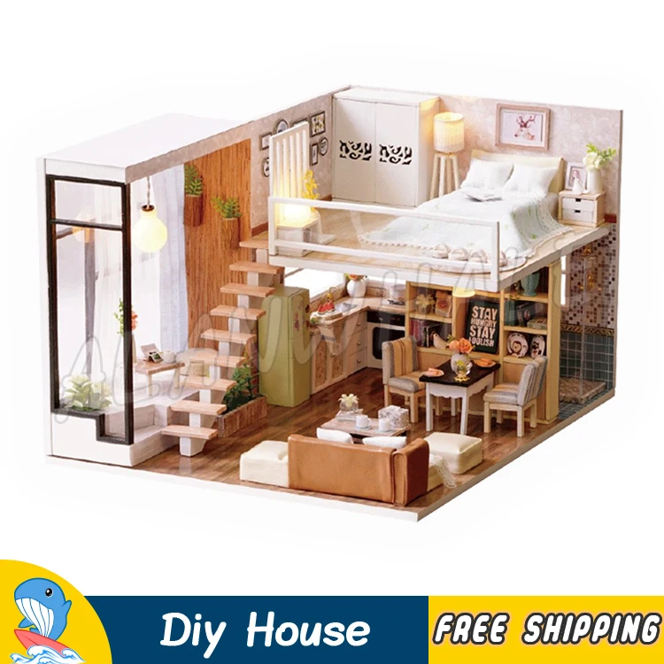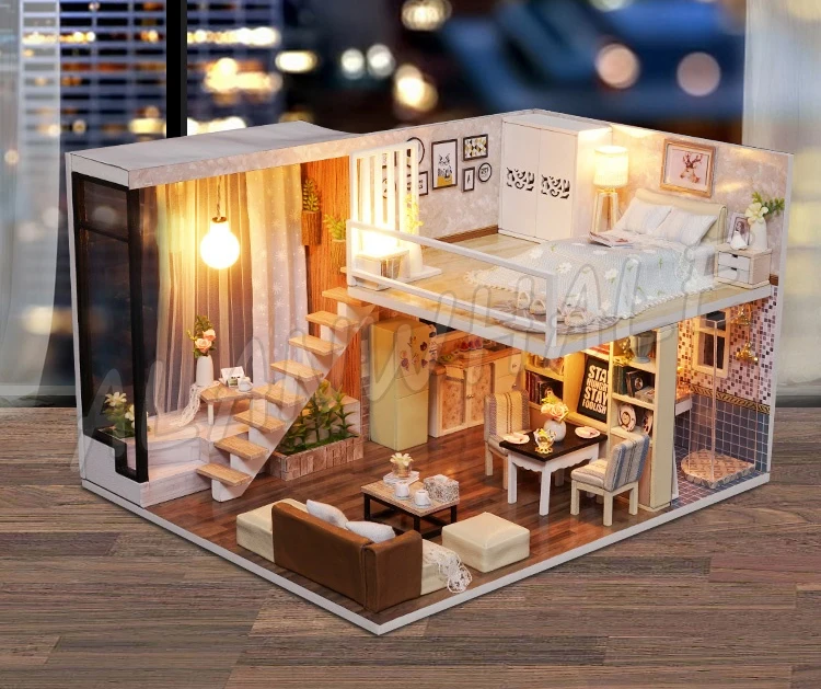 Miniature Doll House Loft Home Two Layer DIY Wooden Dollhouse With Furnitures Adult Teenager Toys F