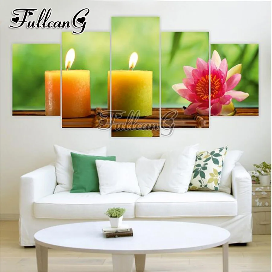 FULLCANG 5pcs diy diamond painting "candlelight and flowers" full drill cross stitch mosaic embroid