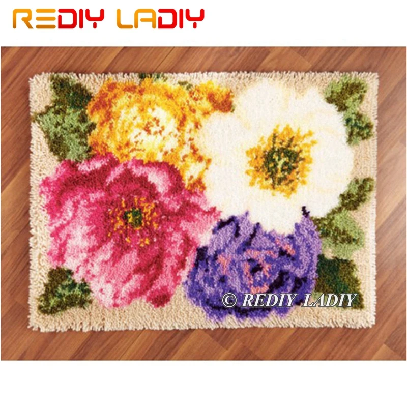 BEST Latch Hook Kits Make Your Own Rug Color Flowers Tapestry Crochet Cushion Mat DIY Carpet Rug Pre-Pri