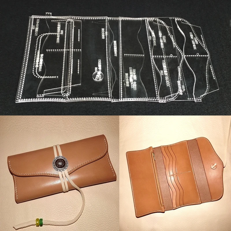 Handmamde Woman Wallet Acrylic Template Leather Pattern DIY Hobby Leathercraft Sewing Pattern Stenc